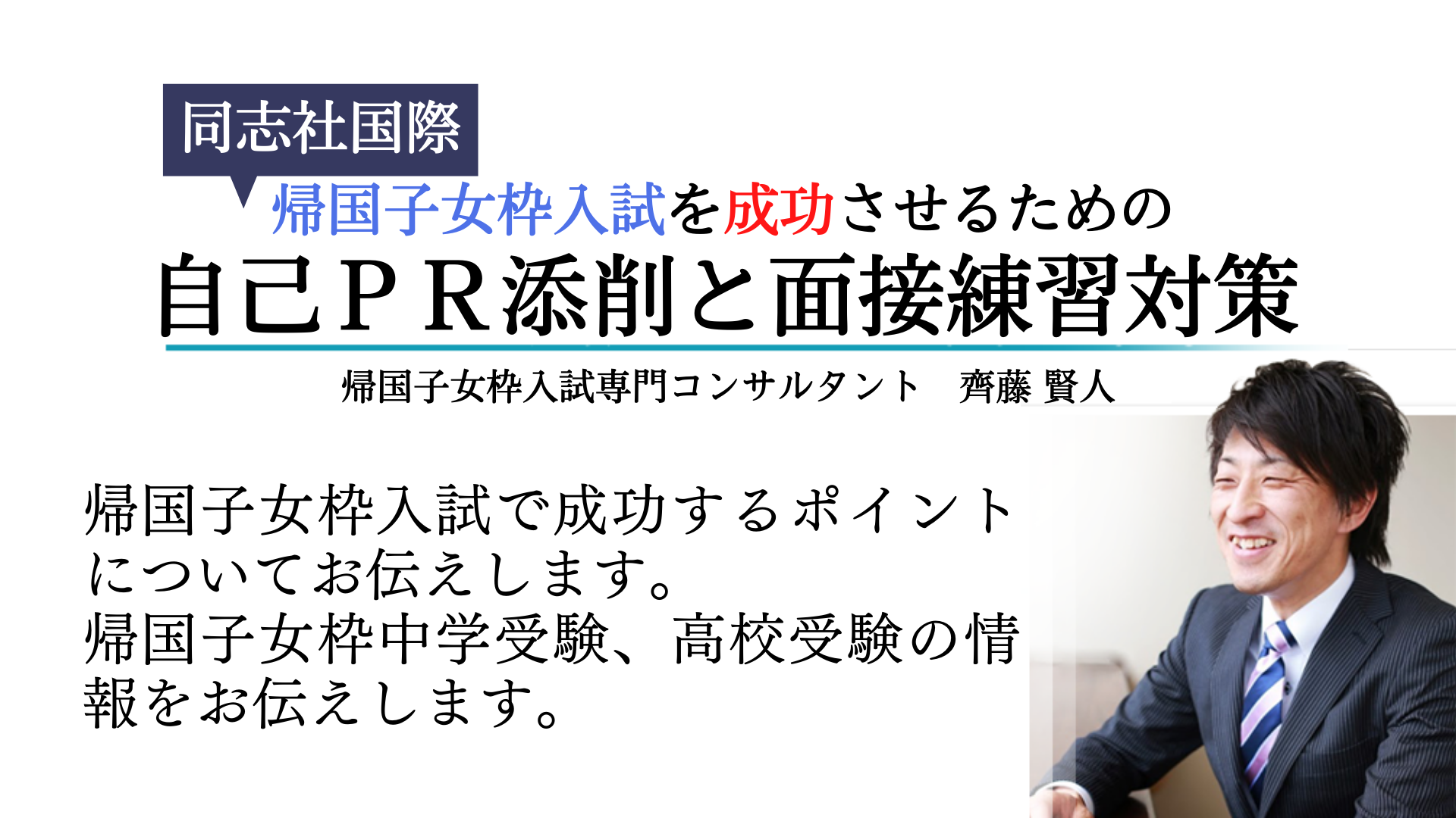 同志社国際高校の、2023年度帰国子女枠特別推薦入試条件A合格、おめでとうございます!